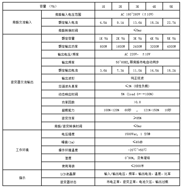 純正弦波輸出,適合所有阻性和感性負(fù)載;